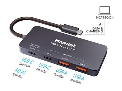 Hub USB 3.2 Type-C 4 Porte 10Gbps - 2x USB-C + 2x USB-A - Power Delivery 100W